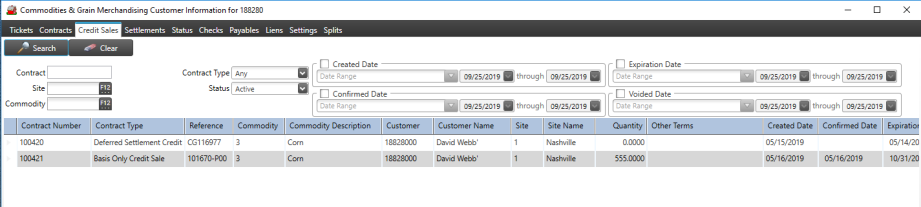 View all Credit Sales for a grower on the Credit Saless tab. Use the Search filter to narrow the Credit Sales by