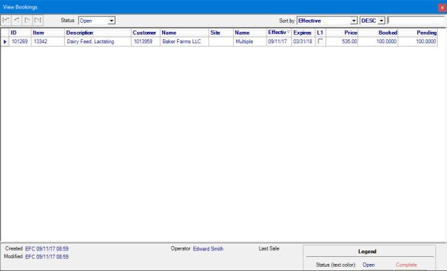 Date fields: Effective is the effective date of the booking and Expireswhich shows any expiration date set on the Booking.