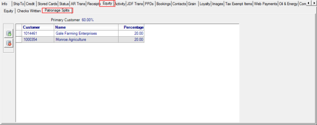 The Primary Customer percentage will automatically update as customers and percentages are added as Patronage Splits.