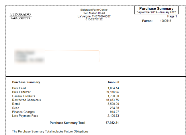 Create a Purchase Summary statement for a specific customer for the previous or range of Financial Periods.