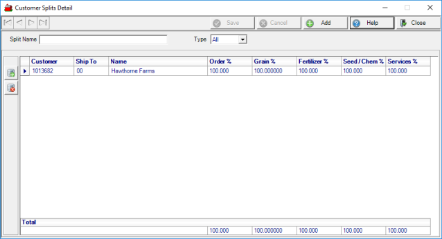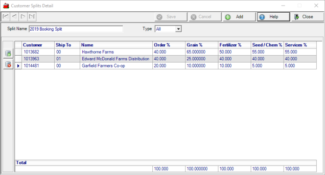 As percentages are entered for customers, all percentages are adjusted automatically to total 100% in the Total section as seen below.