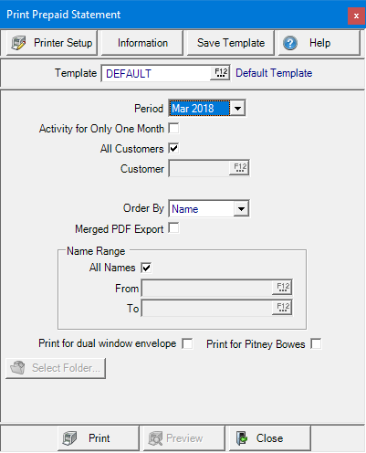 Use the Order By drop down list to choose the print order of the Prepaid Statements.