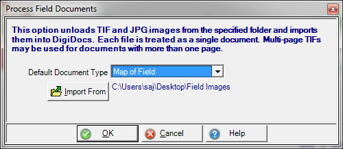 Imports image files from the specified directory which can then be associated with customer fields. A default document type can be set based on what is defined in Digidocs. This option only appears for clients who have Digidocs AR integration enabled in Installation Parameters.