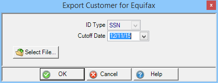 Grant permission to User Profiles in Access User Profiles > select a User Profile > Menu Security > Accounts Receivable > Main Menu > Export Customer for Equifax. |