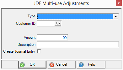 Enter an adjustment to a customer’s JDF account balance by entering a credit or debit memo or refund of finance charges. This entry affects the JDF account balance only and a General Ledger entry can be created in Merchant Ag if selected.