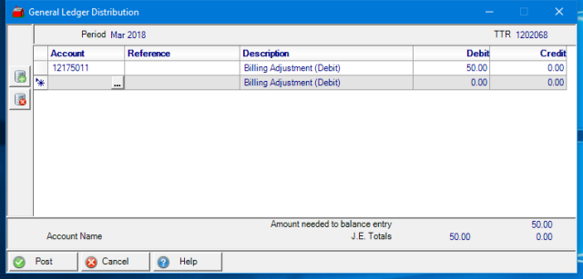 Select Create Journal Entry if a Journal Entry should be created for the Adjustment which opens the General Ledger Distribution window.