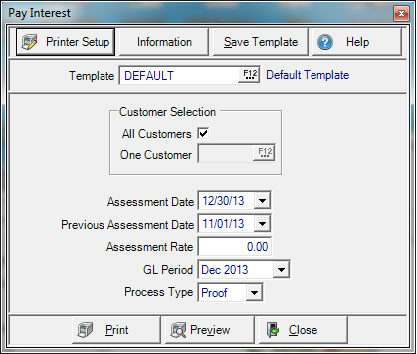 - All Customers- Selects all customers with Pay Interest selected and a credit balance.