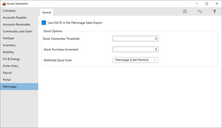 Select Use Old ID in the Patronage Sales Export to include the information included in the Old ID field in customer detail.