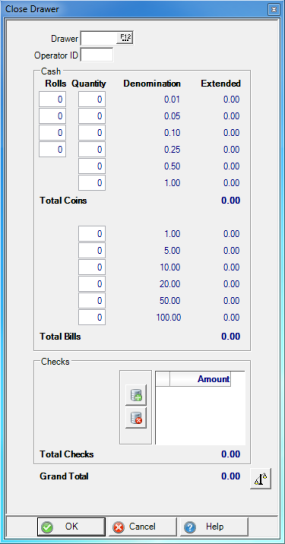 Enter the ending monies in the Drawer 4. Enter the number of rolls of change in the Rolls column.