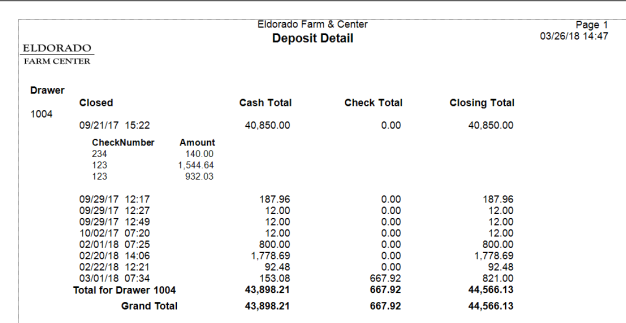 Use the checkbox Include Check Detail for a list of all checks accepted for the drawer.