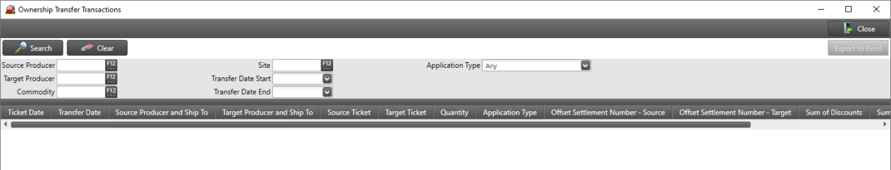 Begin by searching for Ownership Transfers by entering the Source Producer ID or use F12 to search.