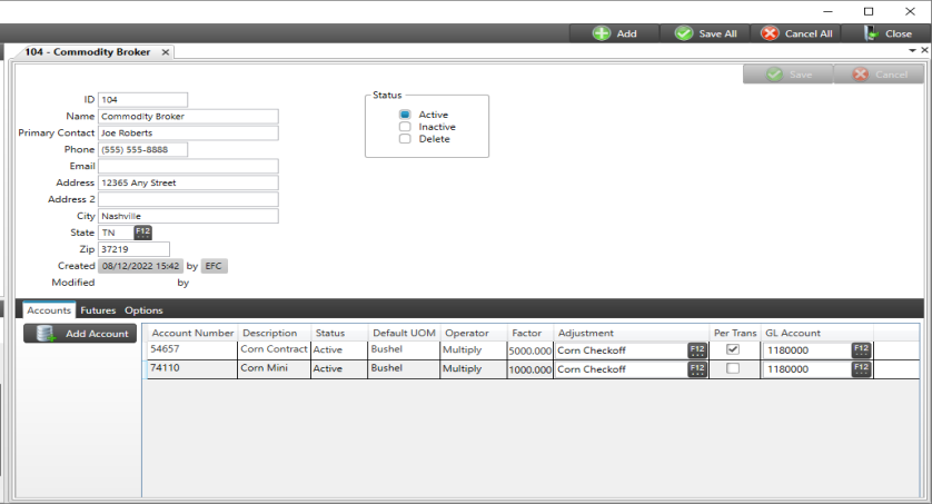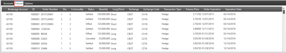The view only Futures tab becomes populated when the Broker is referenced in Access Futures.