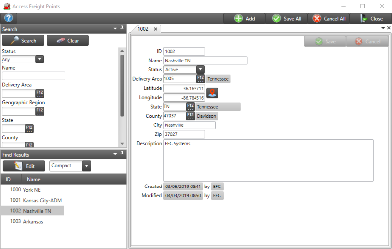Reference a Delivery Area by entering the ID or select F12 to search, this is a required field. See Access Delivery Area for more information.