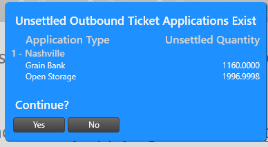 Supply the Producer, Commodity and Site and click Search. If Unsettled Outbound Ticket Applications are found for the Producer, the following message appears.