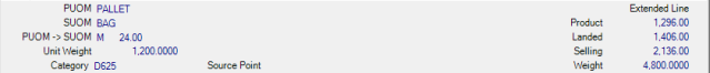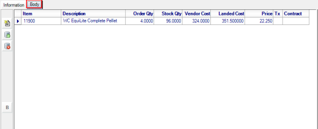 Click on an Item in the Body grid to view additional Item detail. The following information appears at the bottom of the grid.