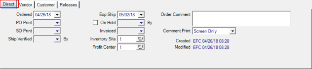 View Date and Inventory Site information about this Direct Order.