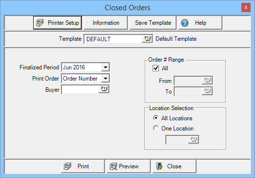 Create a Closed Direct Order report for details on all Closed Direct Orders for a specific Period.