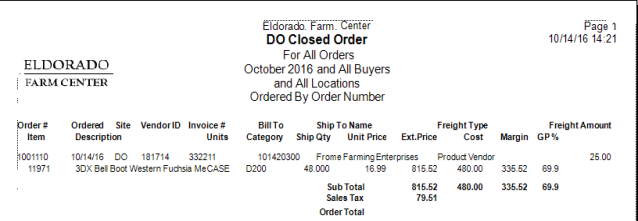 View a Closed Direct Order report for details on all Closed Direct Orders for a specific Period.