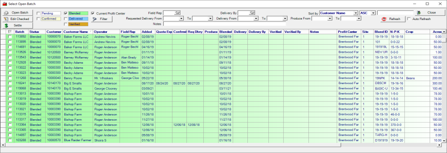 Utilize Dispatching to view scheduled services and deiveries of Fertilizer batches. Combine any of the fields in the Sort by option or any of the fields to view only the Batches required.