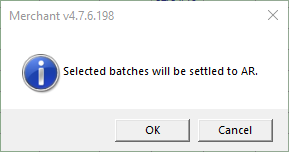 To settle one or multiple batches for the same customer to Accounts Receivable, select the batch(es) by clicking the checkbox to the left of the Batch ID then click the Settle button.