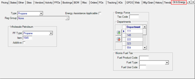 Define the Oil & Energy items that are reportable to the state of Illinois by entering a three character Fuel Product Code.