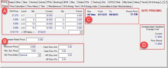A history of all current and past Promotions appears with the Site ID, the start and end dates, and the promotional price of the item is tracked.