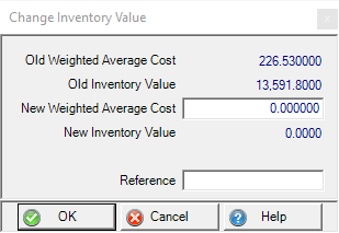 Enter a new Weighted Average Cost and Reference and click OK to accept the change.