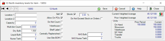 Location 1 & 2- Two locations can be entered to indicate where the item is stocked in store. This information prints on warehouse pick tickets, if selected, and on Inventory Count Sheets.