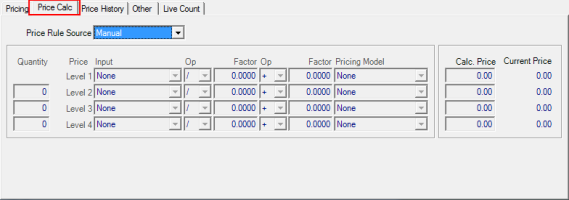 - Manual - Prices are set manually on the Prices tab. See Prices for additional information.