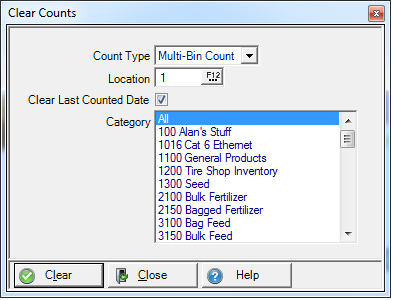 Select Clear Last Counted Dated to clear the last counted date for the items in the selected categories.