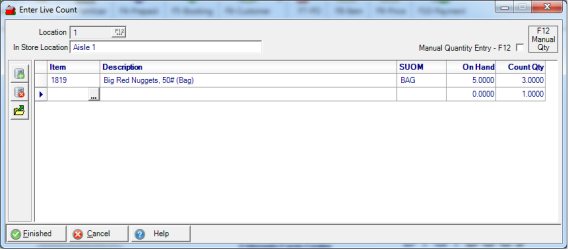 Live counts can be done while the store is open taking into account any transactions that take place between when the item count is entered and when the count is updated or finalized. Live Count can be used when counting by aisle, bin or store sections. Perform a Live Count using a wireless network and a RDP session to prevent losing counts if network issues occur.