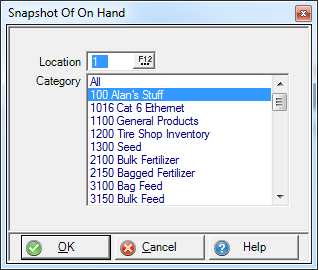 In the Category section, select All, one or multiple Item Categories to Snapshot.