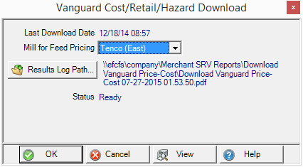 The Import Vanguard Cost/Retail/Hazard Download runs primarily as a SRV task on a specified schedule or can be run manually. When run, the Item Cost, Retail Price and Hazardous Material Information for any Item with a change to those fields in Vanguard Ag or Merchant Ag will be updated. All Item changes since the last successful completion of the scheduled SRV task will be included or run the process manually.