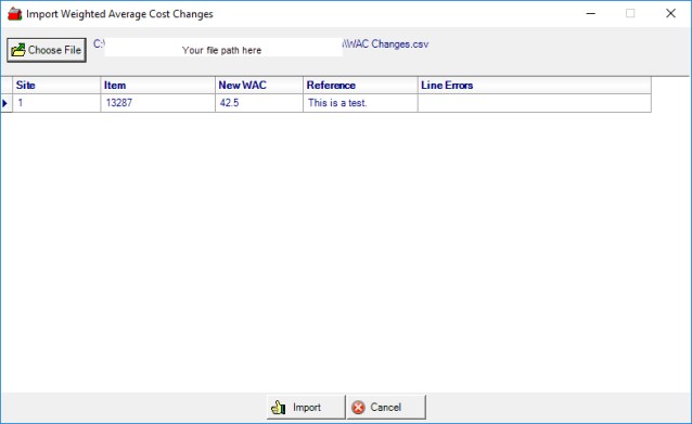 Select the Import button to process the file and a confirmation report is generated with the new Weighted Average Cost applied to Items.