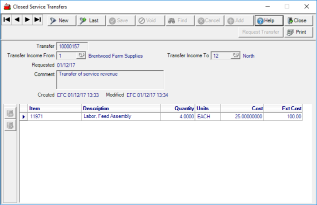 Transfer Income To displays the Site ID and Name that received the Service Revenue.