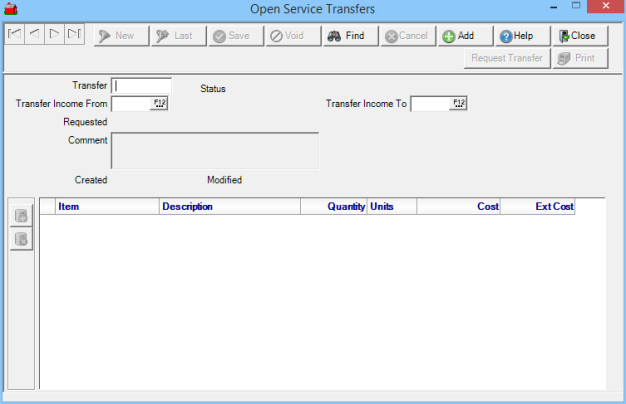 View, Edit or Add a new Service Transfers to transfer income from one Site to another to recognize where service income was generated. This allows the Location that provided the service to recognize the service income generated. For instance, this feature is useful for locations who blend a Fertilizer Batch but the spreading was completed by another store.