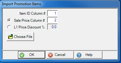 - Import Items - Upload items for a promotion from a two column .csv file.