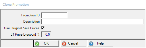 - Promotion ID - Enter a new Promotion ID in this eight character alpha-numeric field.