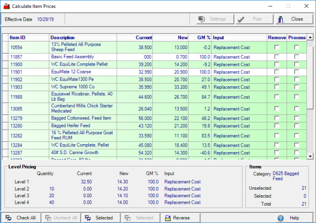 After the item list is reviewed, click Post to transfer updated prices to the Items Future Price column.