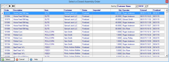 View details on Assembly Orders that are Finalized, Reversed or Voided. Use any of the active fields available to conduct a search for a Closed Assembly Order.