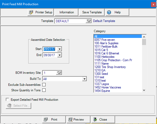 Export Detailed Feed Mill Production- Select to export the report to a location on the desktop.