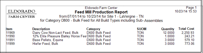 Create a report to view the amount of Feed assembled for a selected range of dates, Sites and Build To types.