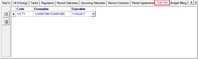 Add Fuel Tax Exemptions for the Customer by adding the Fuel Tax Code to the account. See Access Fuel Tax for more information on Fuel Tax.