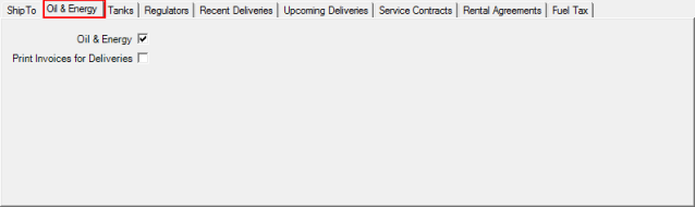 Indicate that the Customer is an Oil and Energy Customer and whether Invoices should be printed for deliveries.