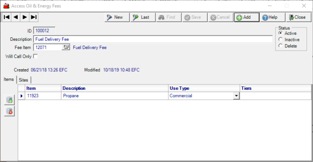 Use Access Fees found on the Oil & Energy menu that will be automatically added to orders created with Customer Service, Generate Scheduled Orders or Generate Summer Fill Orders. Fees can be manually added in Access Open Fuel Orders.