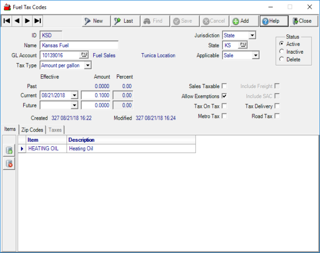 Sales Taxable field is active if Sale is selected in the Applicable field. When selected, Sales Tax will be assessed in addition to the Fuel Tax.