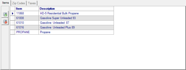 Used for Locality Fuel Taxes, lists the Zip Codes the Locality Fuel Tax will be assessed.