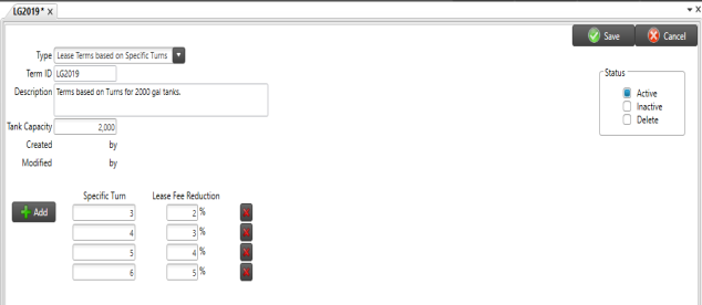 Click Save to finalize the Graduated Lease Term and set it as available for Tank Leases.