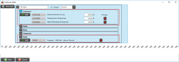 Click Add in the Tanks section to choose the tank associated with the Split then Save to finish creating the Split.