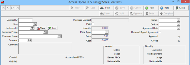 Open Oil & Energy Sales Contracts- Create a new Oil & Energy Sales Contract and specify the Customer, Item and term. Learn about creating an Amount Down Oil & Energy Sales Contract here.